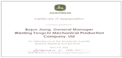 成為年度約翰迪爾世界頂級供應商之一