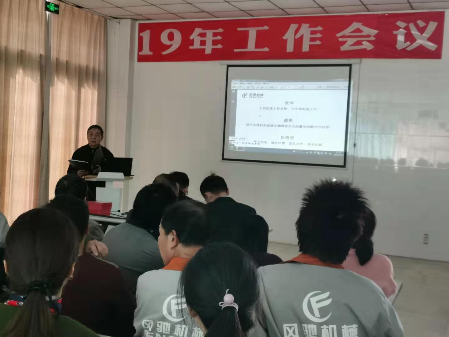 會議由風(fēng)馳車輪公司副總經(jīng)理陳景賢主持,總經(jīng)理李正華總結(jié)了2018年的工作,部署2019的任務(wù)。李總在會上提到在美國發(fā)起貿(mào)易戰(zhàn),經(jīng)濟下行壓力增大的嚴(yán)峻形勢下,車輪公司經(jīng)過全體員工的共同努力,取得銷售增長二成的好業(yè)績,開發(fā)了鋁輪和工程圈兩項新產(chǎn)品,為今明兩年的發(fā)展打下扎實的基礎(chǔ)。2019年,我們更要凝心聚力,乘勝前進,出色完成“營業(yè)收入2500萬元,利潤指標(biāo)9%,每萬元產(chǎn)值工資含量不超過14.5%,客戶投訴少于15起,有等級的工傷事故0起”的年度計劃目標(biāo),以此來感謝總公司的扶持和關(guān)懷。